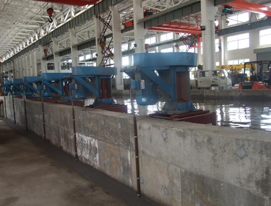 浸出槽是礦山冶金主要設備之一,用攪拌器使物料在溶液中處于懸浮狀態(tài)的浸出方法。物料和浸出劑按一定的比例調漿,調成的礦漿密度一般為10%~50%。在浸出過程中,利甩設置在攪拌槽中的攪拌裝置使空氣與固體液體充分接觸混合均勻以及固體顆粒懸浮。旋槳式ZCX,斜葉槳式(XJ、HJ),開啟渦輪式(XKK,MK,ZK)。
